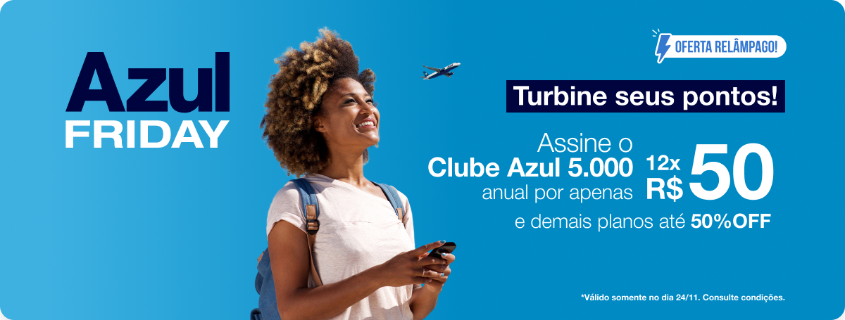 Assine o Clube Azul 5.000 Anual por R$ 50 por mês ou 50% em demais planos